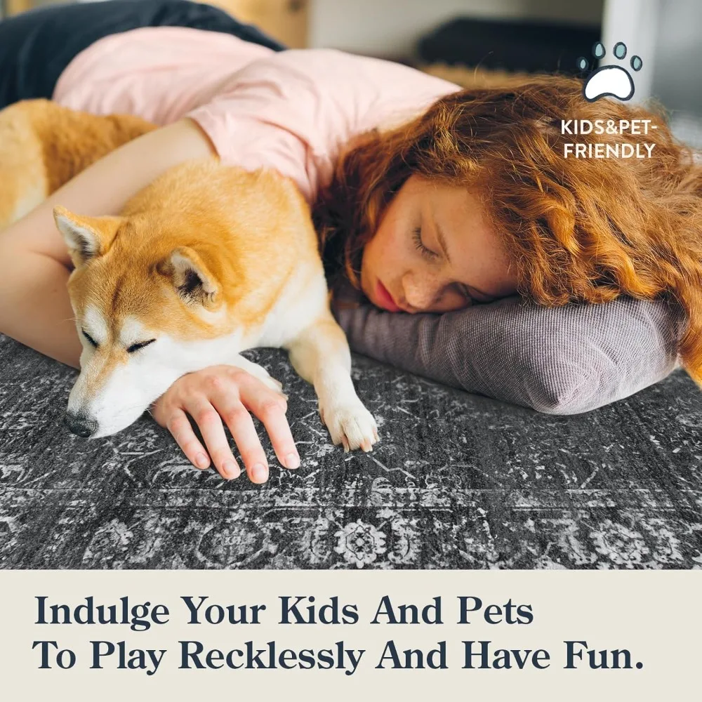 - [Pet Friendly] - Our washable rugs 6x9 is low pile, won't be easily chewed or clawed at by your curious four-legged friendly, and paws won't get snagged or get caught on edges