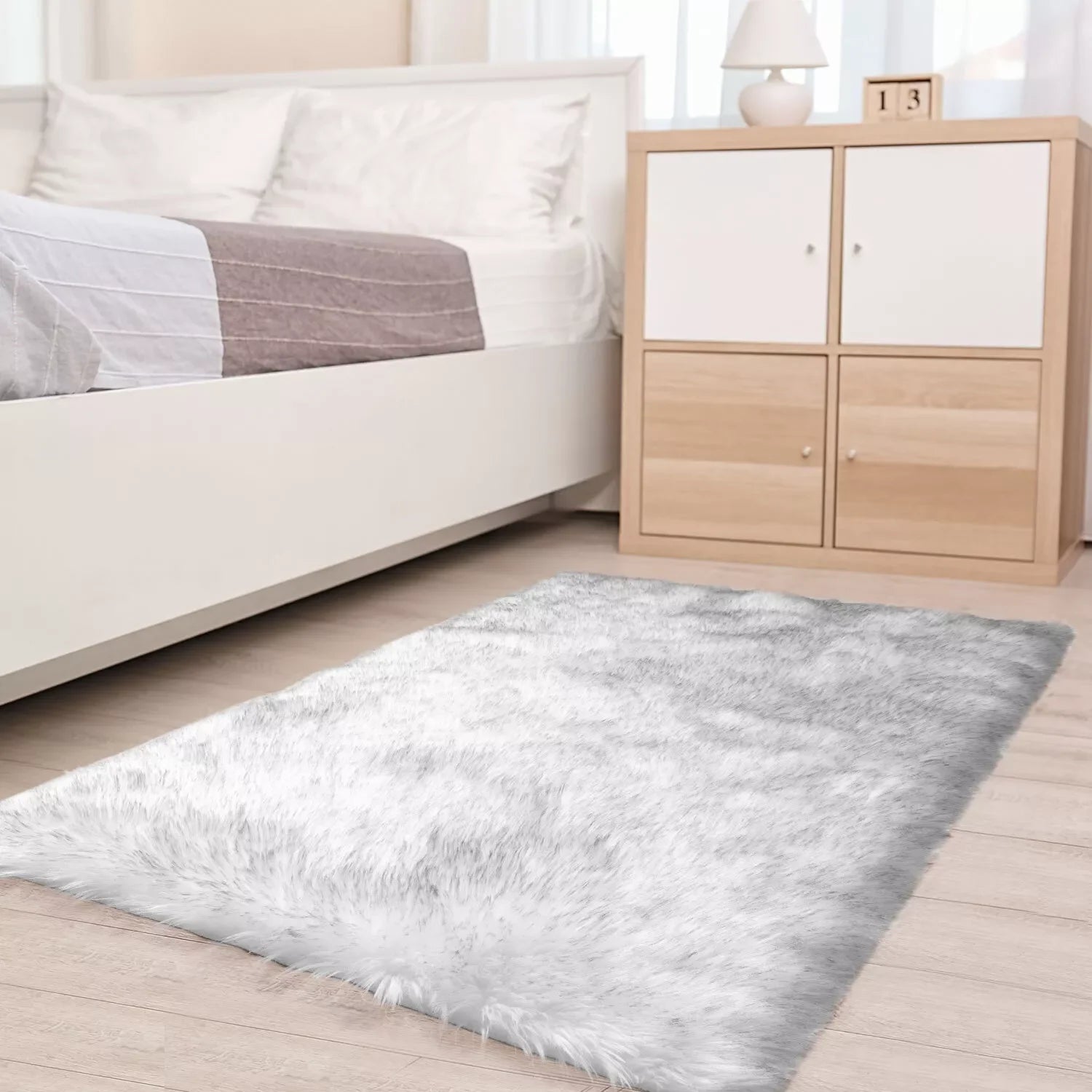 Luxurious Softness: Our faux fur rug is made from 100% polyester fiber, delivering an incredibly soft and plush feel. The pet-friendly design ensures it's safe for both animals and humans, making it perfect for bedrooms, living rooms, kids' rooms, and more.