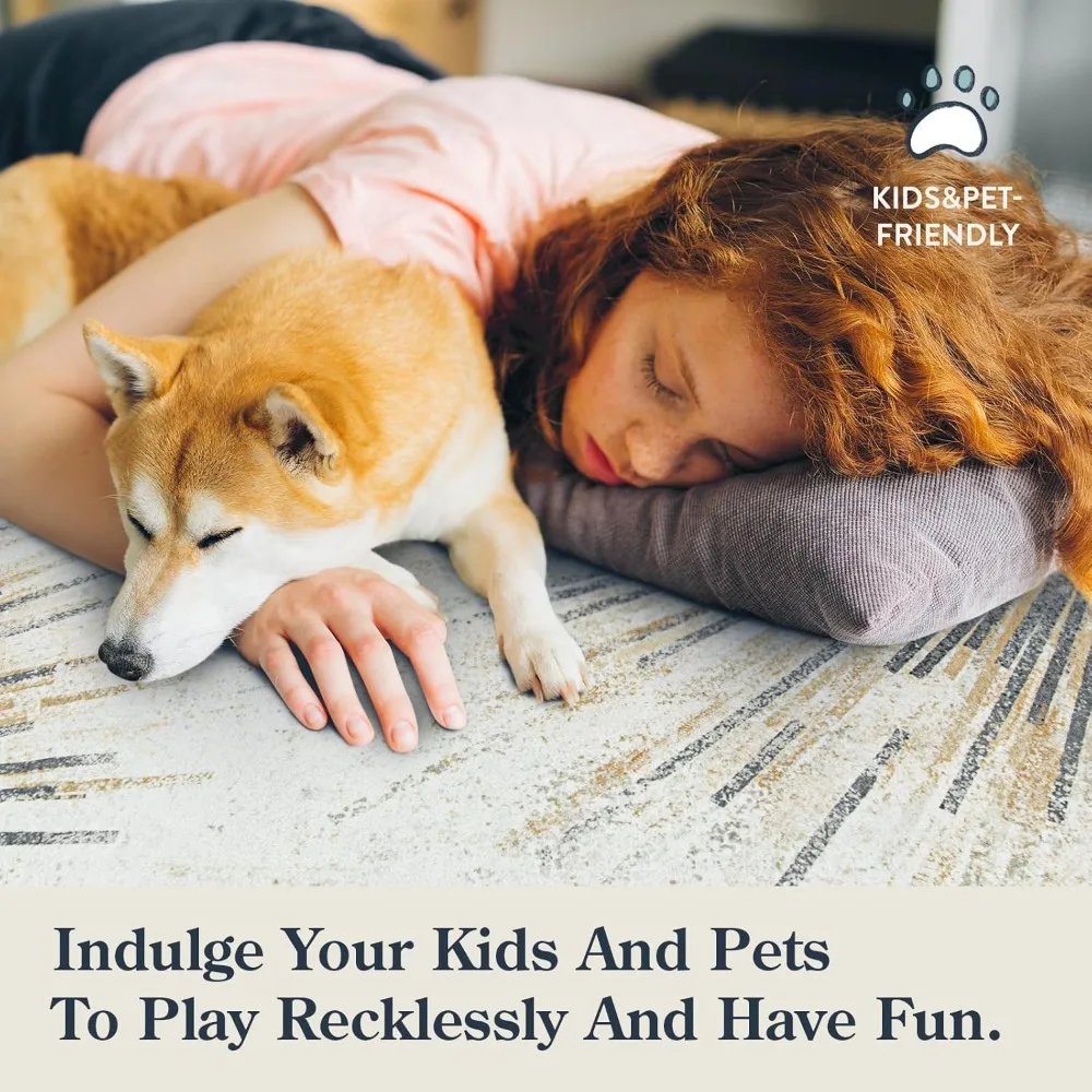 Non-Slip and Safe: The rubber backing is coated with a TPR backing to help the rug 10x14 stay in place. (No need to pay for extra rug pad.) Sufficient grip to prevent dangerous slips. Safe to use on laminate and hardwood floors