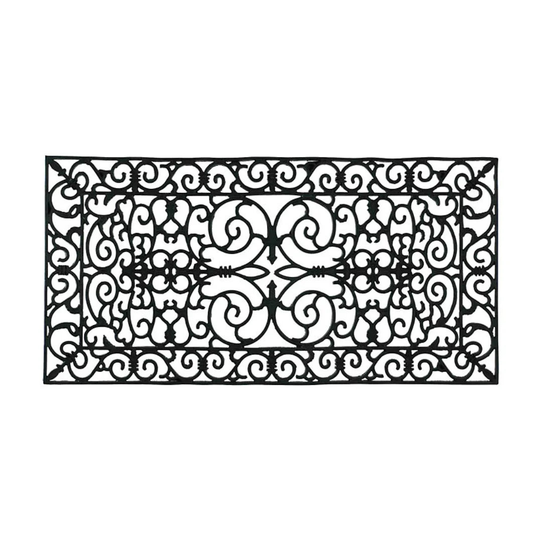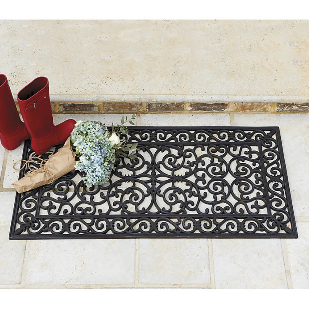 Designed with the look of iron scrollwork, they're actually made of virtually indestructible molded rubber. Impervious to cold, heat, and water, they stay put when you're scraping your shoes and rinse clean with a hose