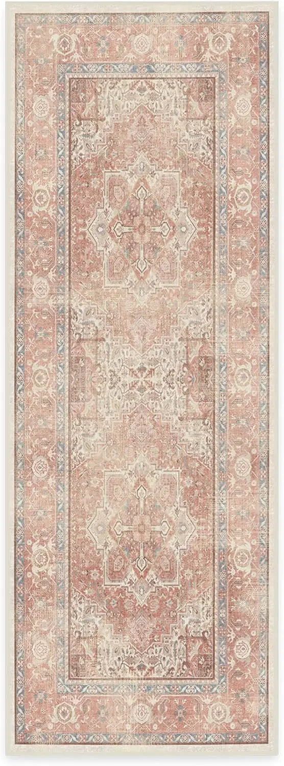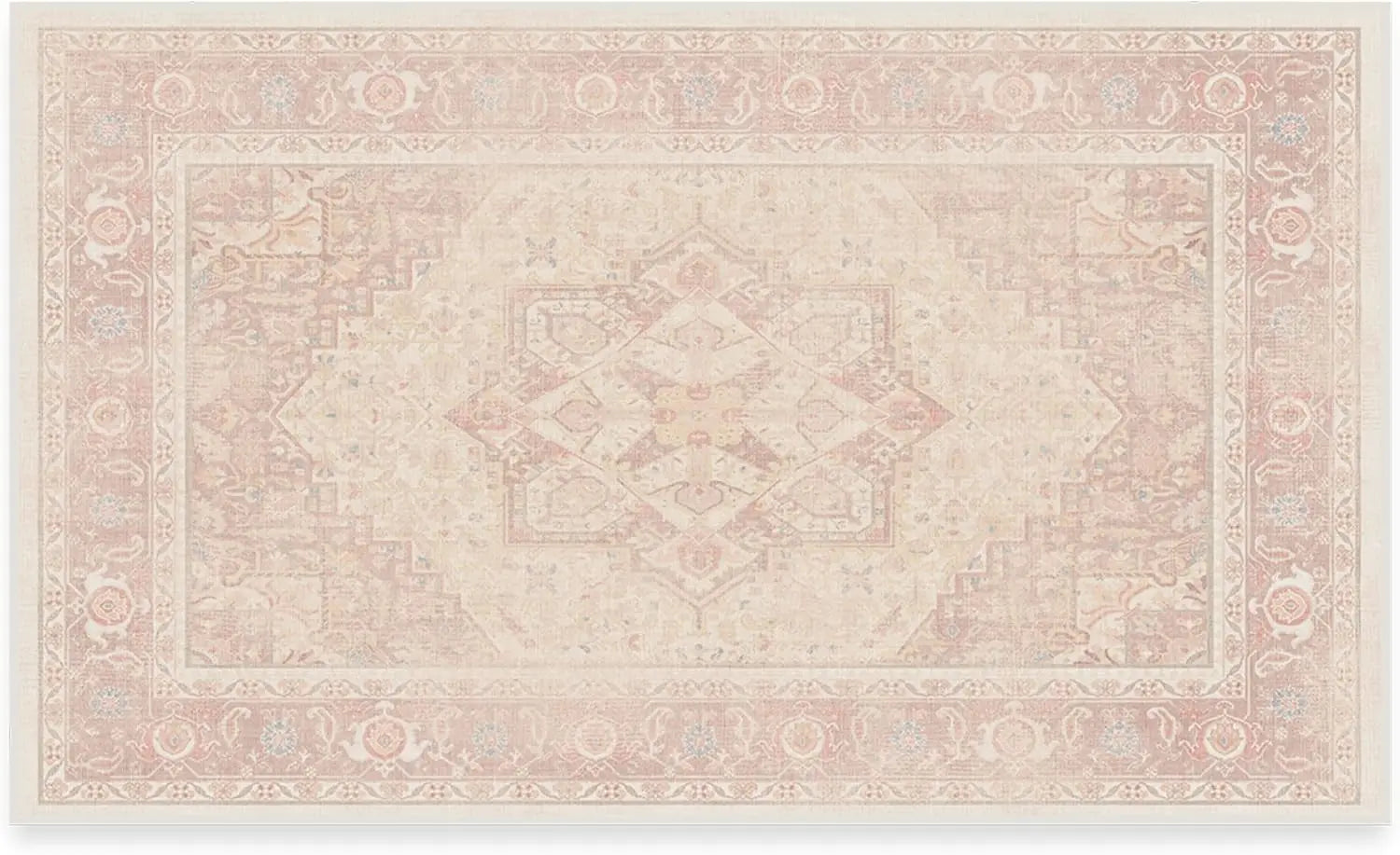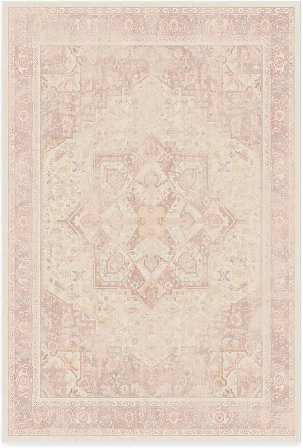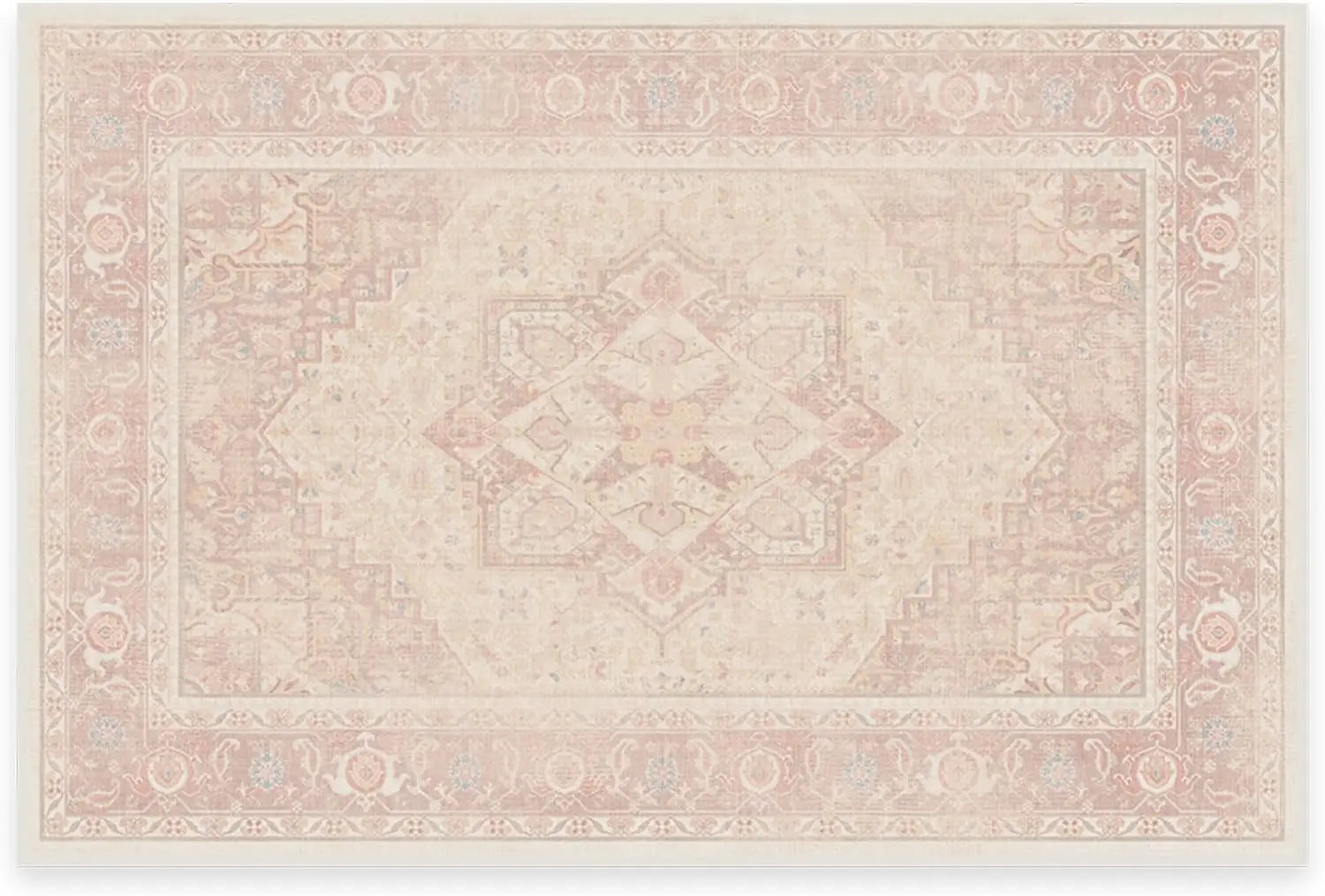 1. CLASSIC VINTAGE STYLE, MODERN RUG TECHNOLOGY: Our rustic Kamran Rose Washable Area Rug blends a warm blush color palette of nude pink and delightful rose tones with the geometric grandeur of a traditional Heriz design