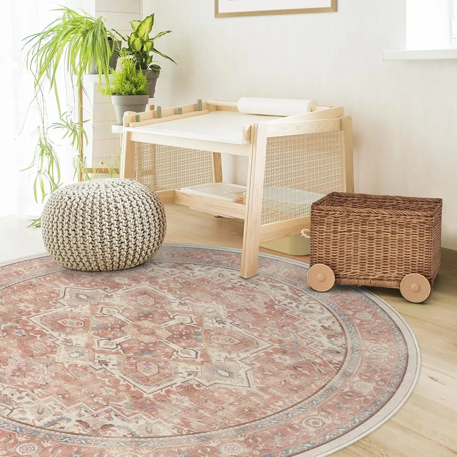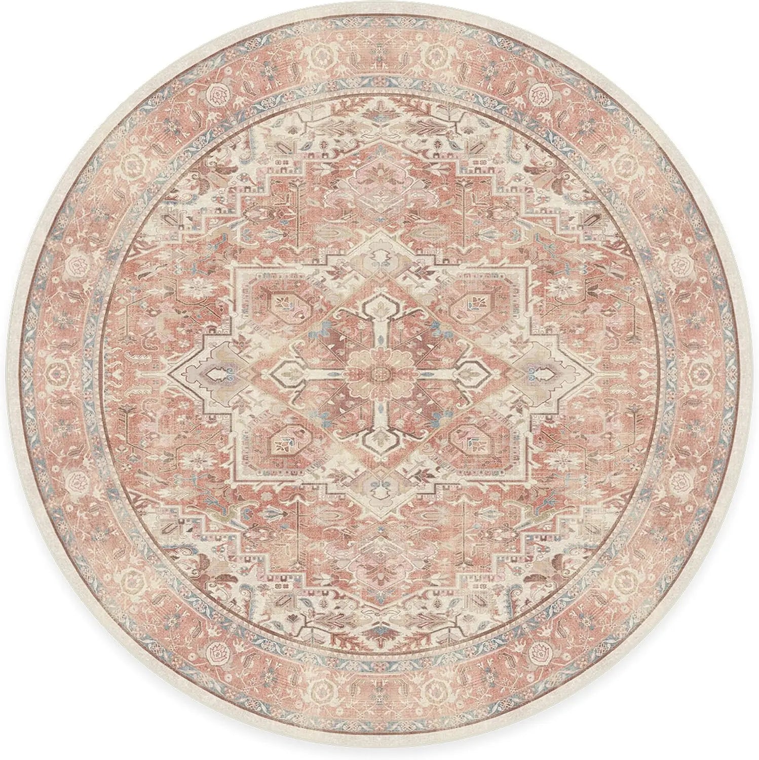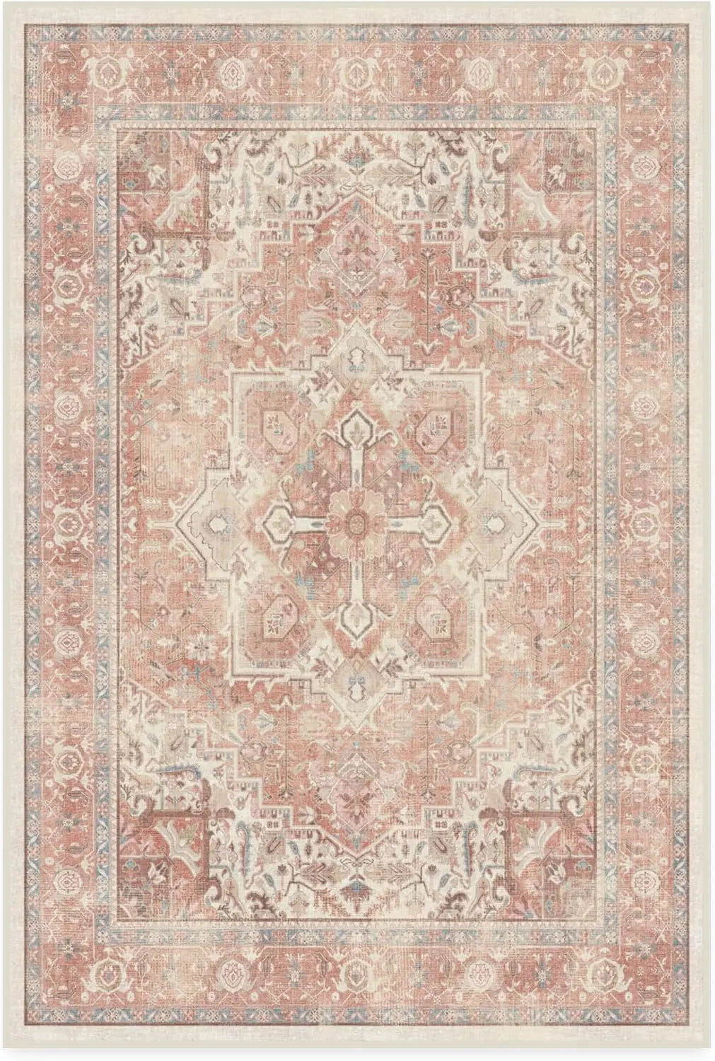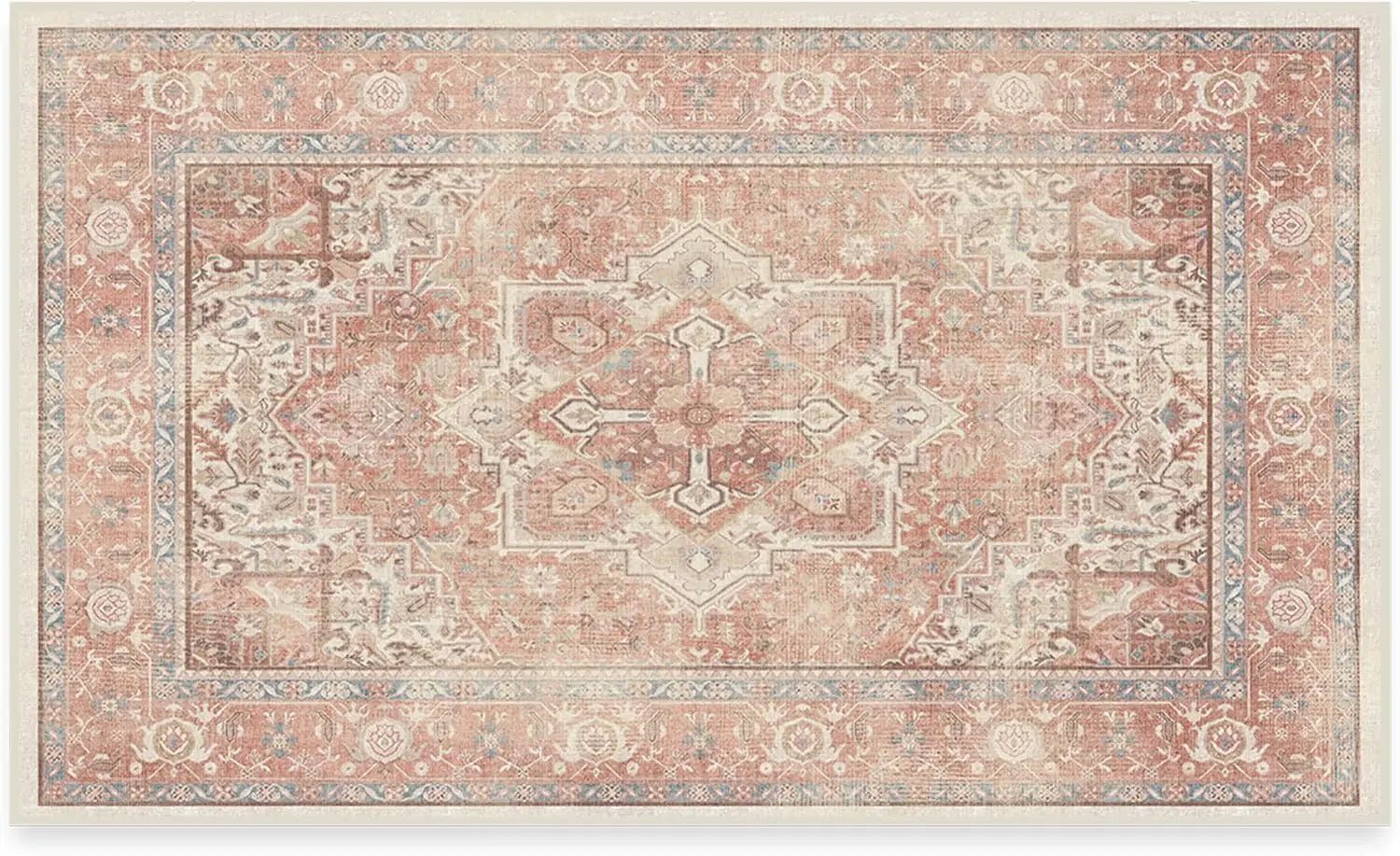 1. CLASSIC VINTAGE STYLE, MODERN RUG TECHNOLOGY: Our rustic Kamran Rose Washable Area Rug blends a warm blush color palette of nude pink and delightful rose tones with the geometric grandeur of a traditional Heriz design