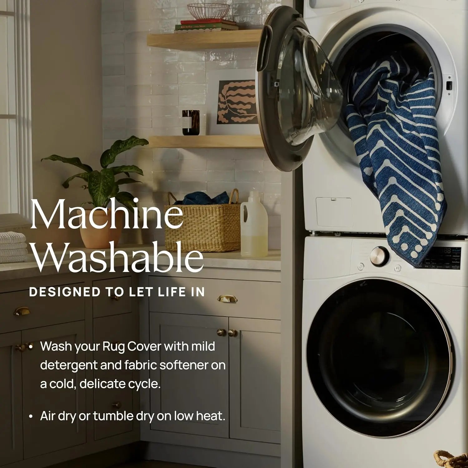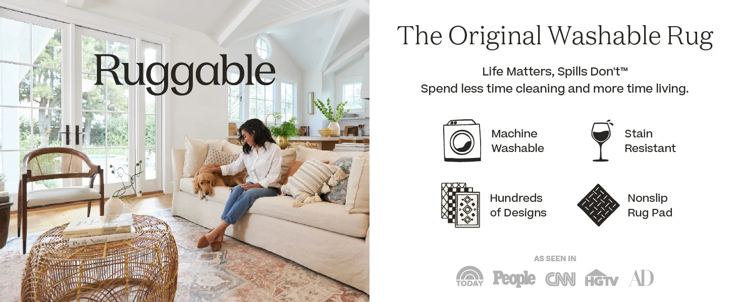 2. MACHINE WASHABILITY: RUGGABLE\u2019s stain and water-resistant washable rugs fits standard washers. Paired with our non-slip rug pad, it\u2019s perfect for busy homes needing style and easy maintenance.